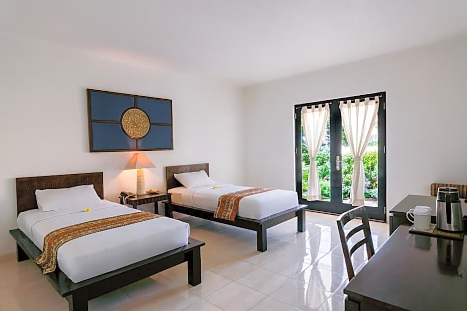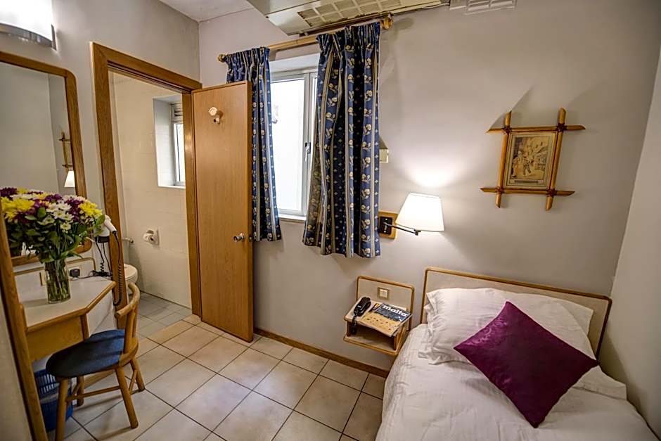 This smaller room comes with air conditioning, TV and private bathroom. The window overlooks an internal courtyard.
